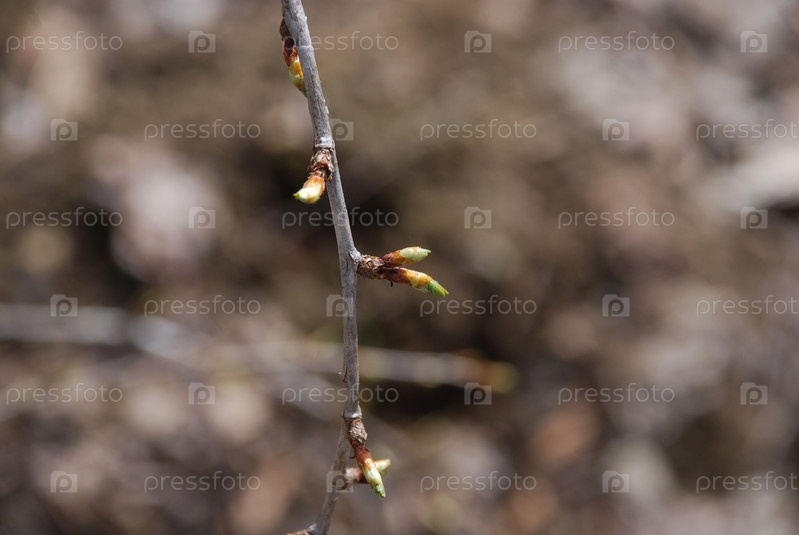 Зеленые бутоны на коричневых ветвях