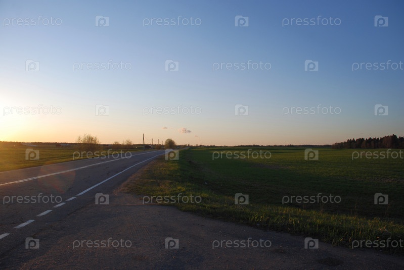 Сельская дорога уходит вдаль за горизонт