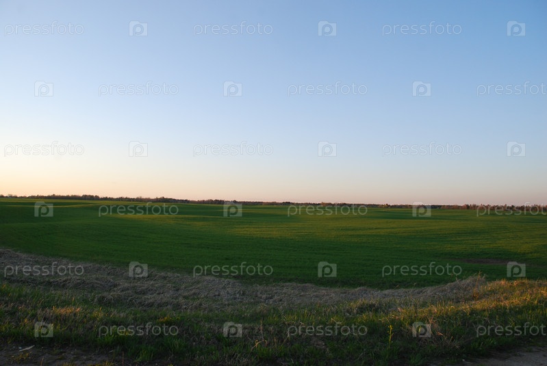 Поле с зеленой свежей травой