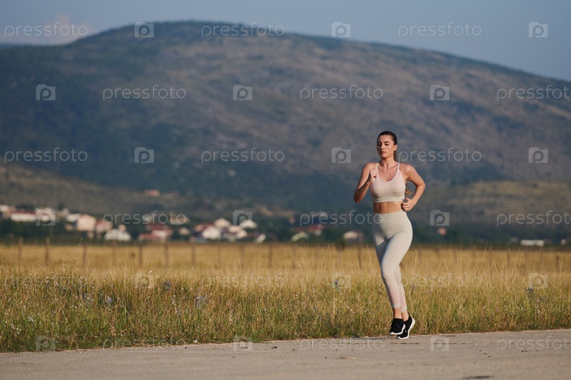 Решительная женщина-спортсменка тренируется для достижения успеха под утренним солнцем