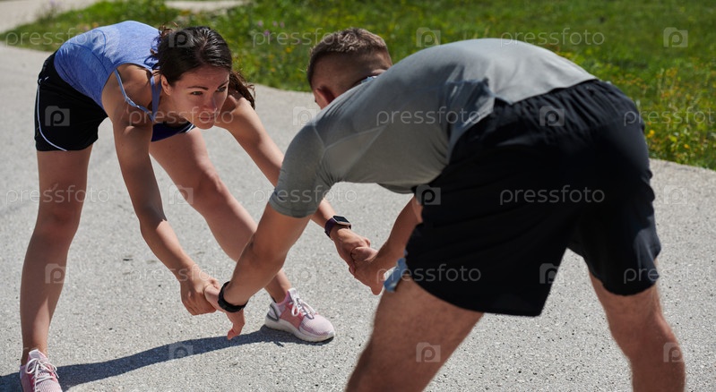 Занимайтесь спортом, макетируйте, тренируйтесь вместе и растягивайтесь вместе на свежем воздухе на природе у горы для здоровья, хорошего самочувствия и фитнеса. Люди, партнеры и спортсмены тренируются и поддерживают форму и здоровье