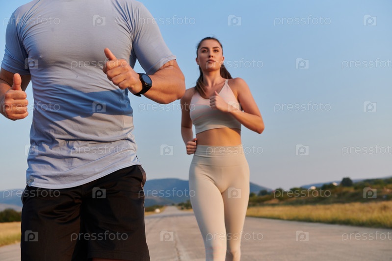 Группа друзей ведет здоровый образ жизни, бегая на свежем воздухе в солнечный день, занимаясь фитнесом и наслаждаясь бодрящим эффектом физических упражнений и природы