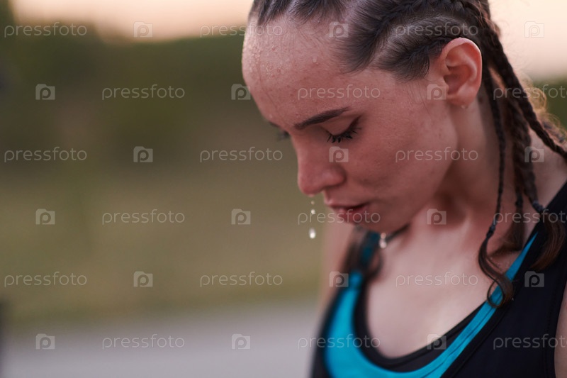 Крупный план портрета решительного спортсмена, отдыхающего после интенсивной тренировки