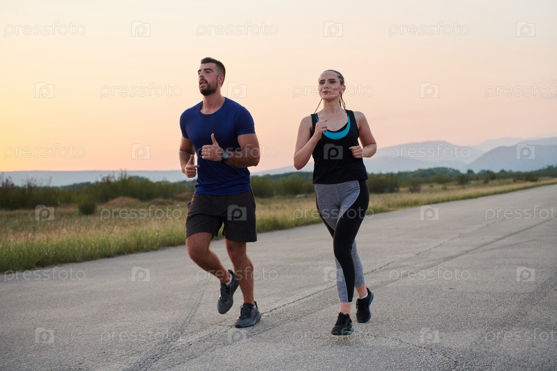 Динамичный дуэт: пара, готовая к фитнесу, обретает уверенность и готовится к предстоящим марафонам