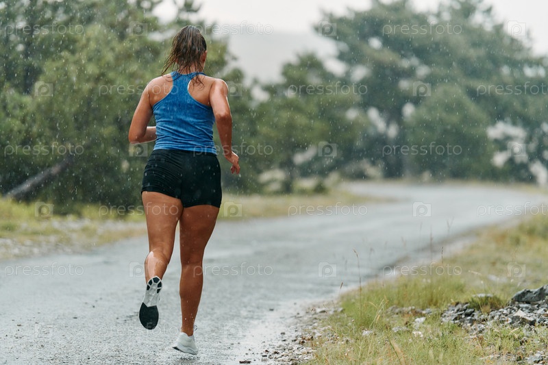 Неудержимый: решительный спортсмен тренируется под дождем в поисках славы в марафоне