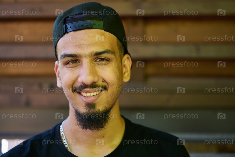 Крупный план портрета улыбающегося суданского подростка с широкой улыбкой, подбородком и кепкой