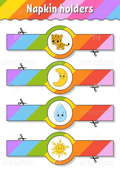 Держатели для салфеток. Бумажный шаблон. Украшение стола на день рождения, свадьбу, вечеринку. Векторная иллюстрация