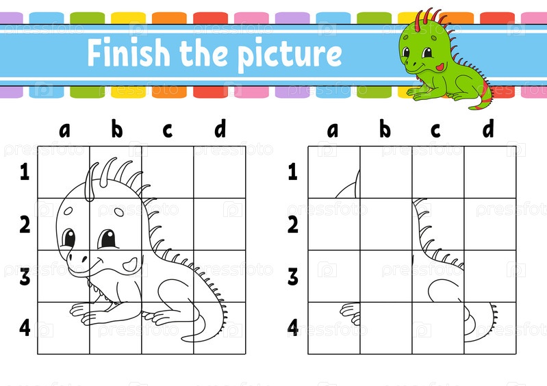 Закончите картинку. Страницы раскраски для детей. Рабочий лист по развитию образования. Игра для детей. Практика почерка. мультипликационный персонаж. Векторная иллюстрация
