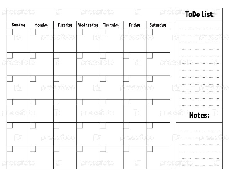 Пустой шаблон календаря на один месяц без дат. Красочный дизайн с милым персонажем. Векторная иллюстрация