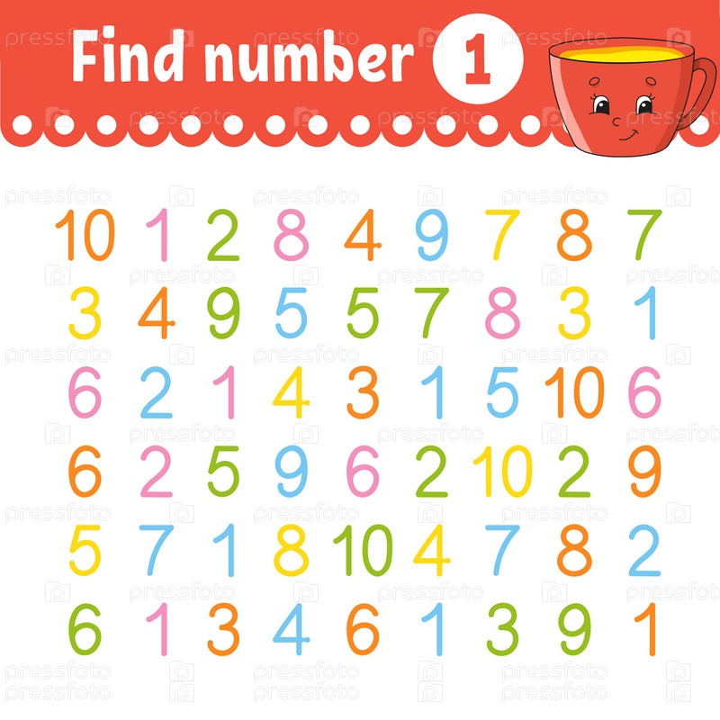 Найдите номер. Рабочий лист по развитию образования. Страница активности с картинками. Игра для детей. Забавный персонаж. мультяшный стиль. Векторная иллюстрация