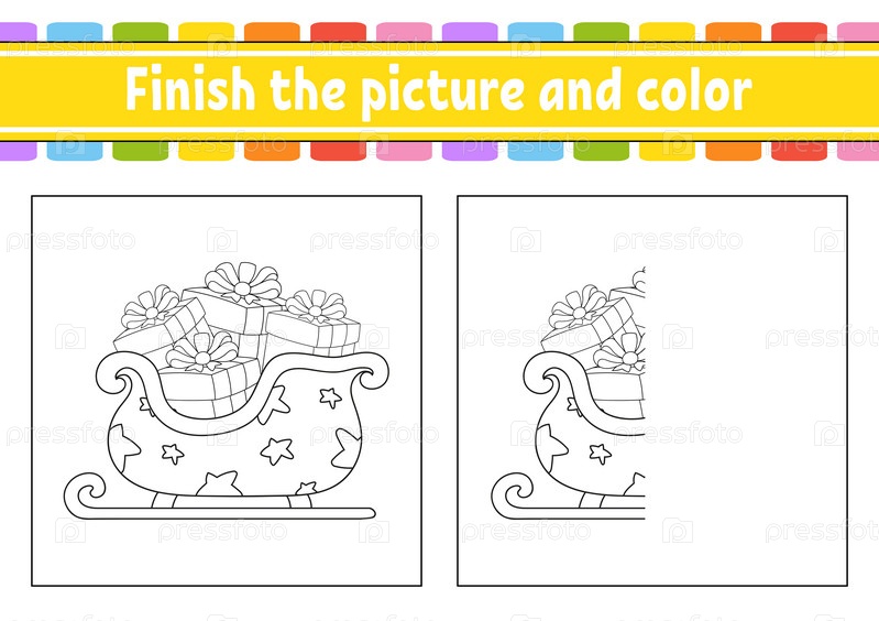 Закончите картинку и раскрасьте. мультипликационный персонаж изолирован на белом фоне. Для обучения детей. Рабочий лист активности. Векторная иллюстрация