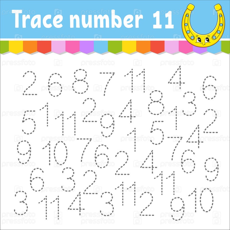 Номер трассировки. Практика почерка. Изучение цифр для детей. Рабочий лист по развитию образования. Страница активности. Игра для малышей и дошкольников. Векторная иллюстрация