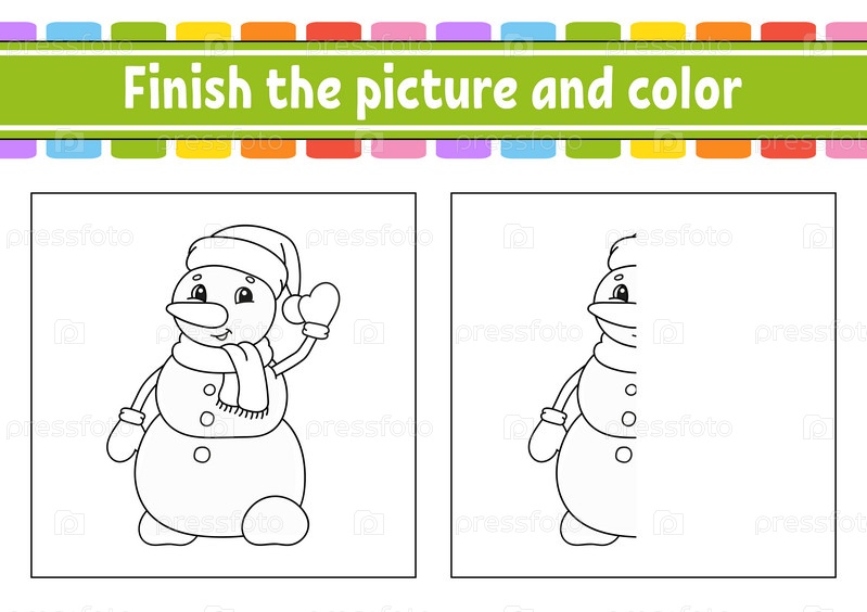 Закончите картинку и раскрасьте. мультипликационный персонаж изолирован на белом фоне. Для обучения детей. Рабочий лист активности. Векторная иллюстрация