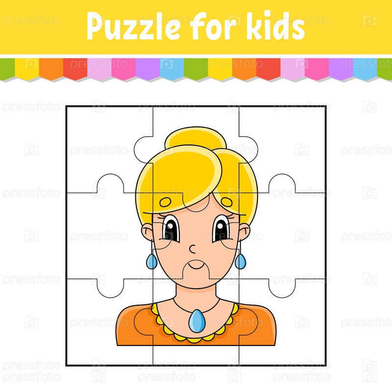 Игра-головоломка для детей. Кусочки головоломки. Цветной рабочий лист. Страница активности. мультяшный стиль. Векторная иллюстрация