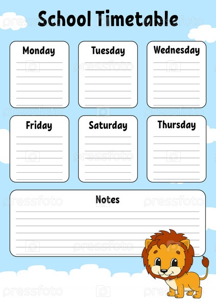 Школьное расписание. Для обучения детей. Изолированные на цветном фоне. С милым мультяшным персонажем. Векторная иллюстрация