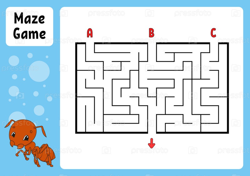 Прямоугольный лабиринт. Игра для детей. Три входа, один выход. Рабочий лист по образованию. Головоломка для детей. Загадка лабиринта. Найдите правильный путь. мультипликационный персонаж. Векторная иллюстрация