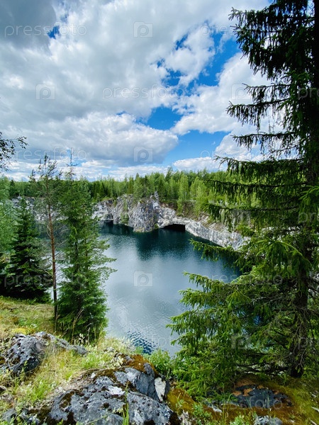 Величественный лес и живописное озеро, живописная северная природа Карелии
