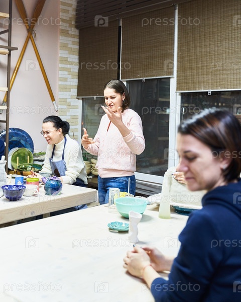 Женщина делает керамическую посуду в мастерской. Концепция для женщины-фрилансера, бизнеса. Ручная работа