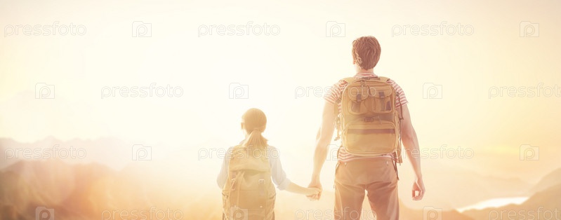 Счастливая семья на закате