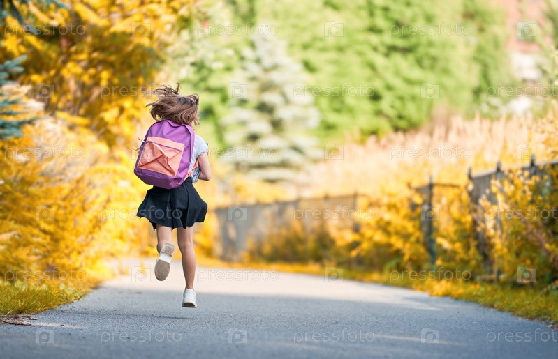 Девушка с рюкзаком идет в школу