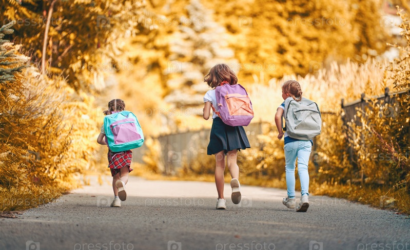 Девочки с рюкзаком идут в школу