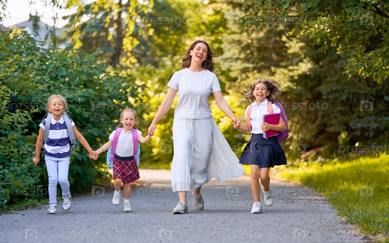Родители и ученики идут в школу