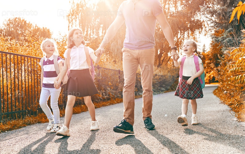 Родители и ученики идут в школу