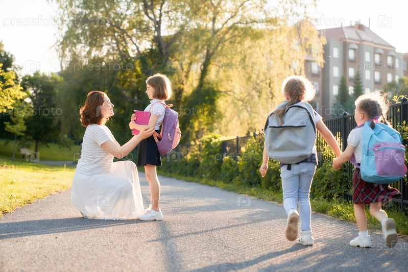 Родители и ученики идут в школу