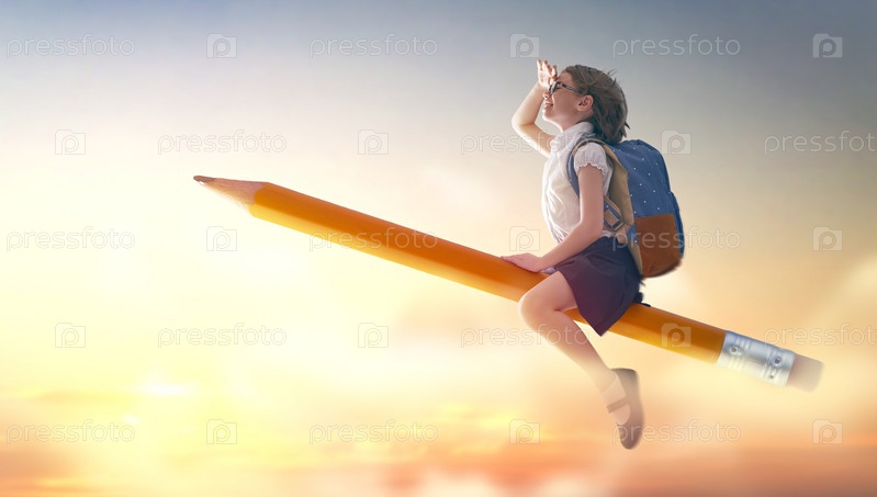Ребенок летит на карандаше