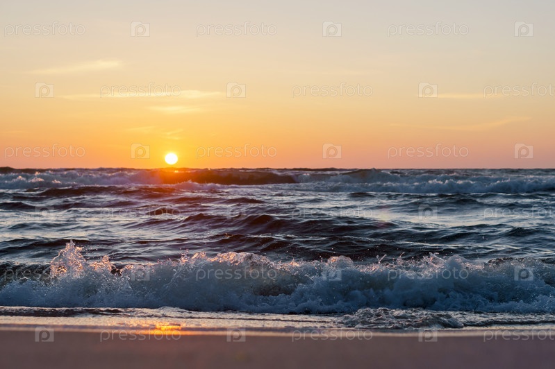 Закат над морем. Отражение солнечного света в морских волнах. Небо в лучах заката. Балтийское море