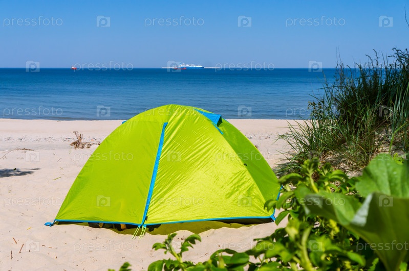 Туристическая палатка на песке. Туристическая палатка на пляже. Поход с палатками летом