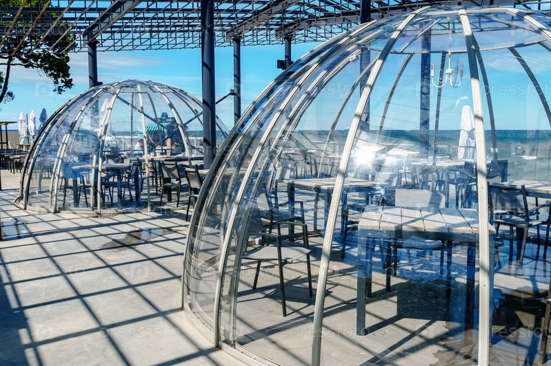 Кафе под стеклянным куполом. Набережная Балтийского моря. Ресторан на берегу моря