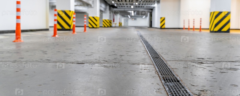 Пустая подземная автостоянка, сосредоточьтесь на размытом фоне переднего плана