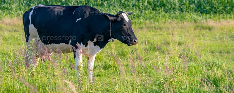 Коровы пасутся на сочном лугу в летний день