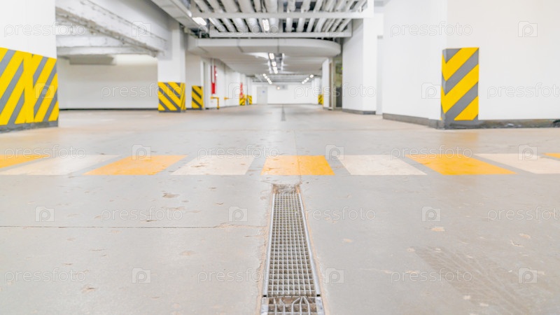 Пустая подземная автостоянка, сосредоточьтесь на размытом фоне переднего плана