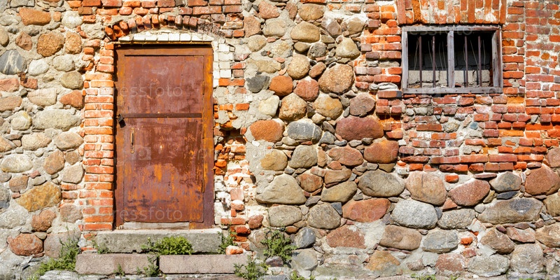 Древняя каменная стена с дверью и окном