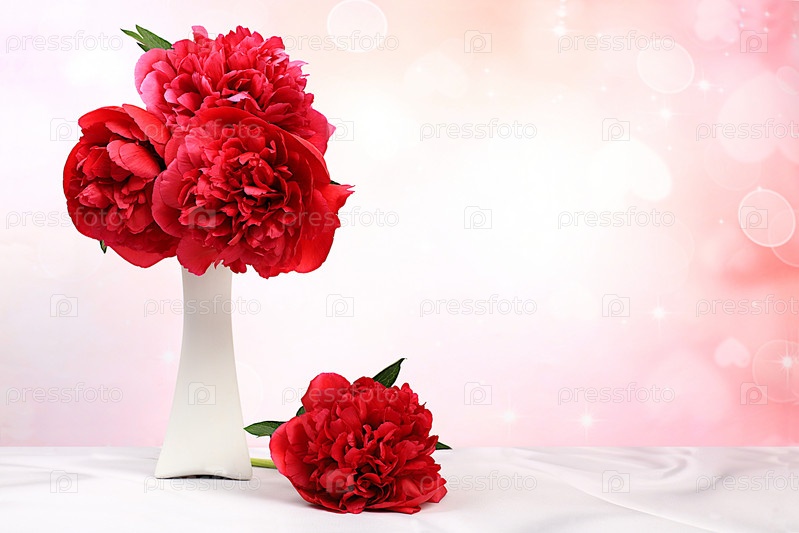 Абстрактная цветочная композиция, красивые бордовые пионы на элегантном фоне в вазе, весенний и летний баннер. Креативный современный букет. Открытка ко Дню матери, с днем рождения, свадьба, узор, выборочный фокус