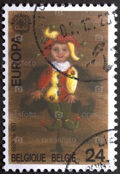 Почтовая марка с гашением Бельгия 1989 год. Арлекин марионетка