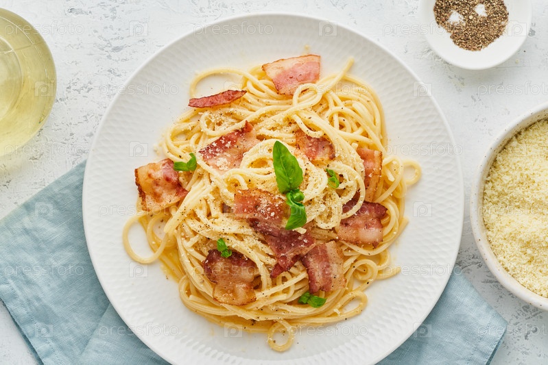 Паста Карбонара. Спагетти с панчеттой, яйцом, сыром пармезан и сливочным соусом