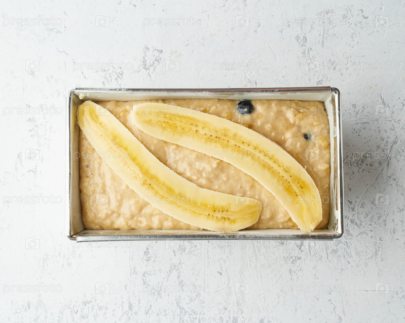 Домашний банановый хлеб. Тесто для пирога в форме буханки. Пошаговый рецепт. Шаг 11. Вид сверху, белый стол