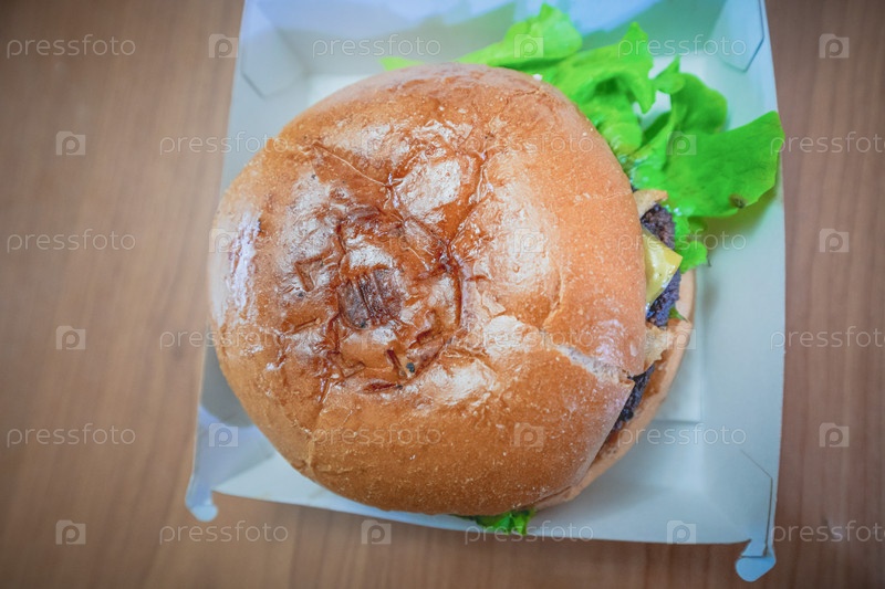Гамбургер на столе в коробке
