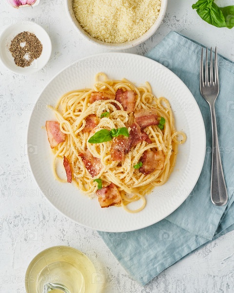 Паста Карбонара. Спагетти с панчеттой, яйцом, сыром пармезан и сливочным соусом