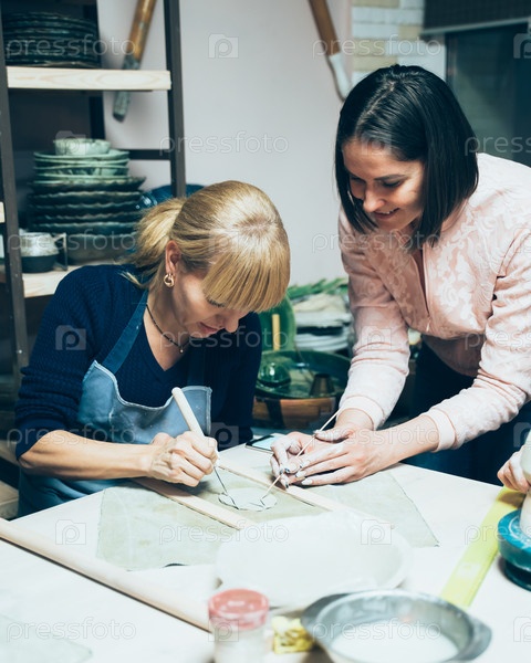 Женщина делает керамическую посуду в мастерской. Концепция для женщины-фрилансера, бизнеса. Ручная работа