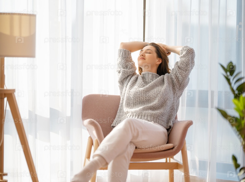 Женщина отдыхает дома в кресле