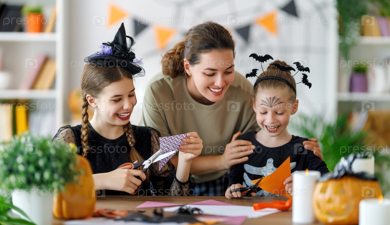 Счастливая семья готовится к Хэллоуину