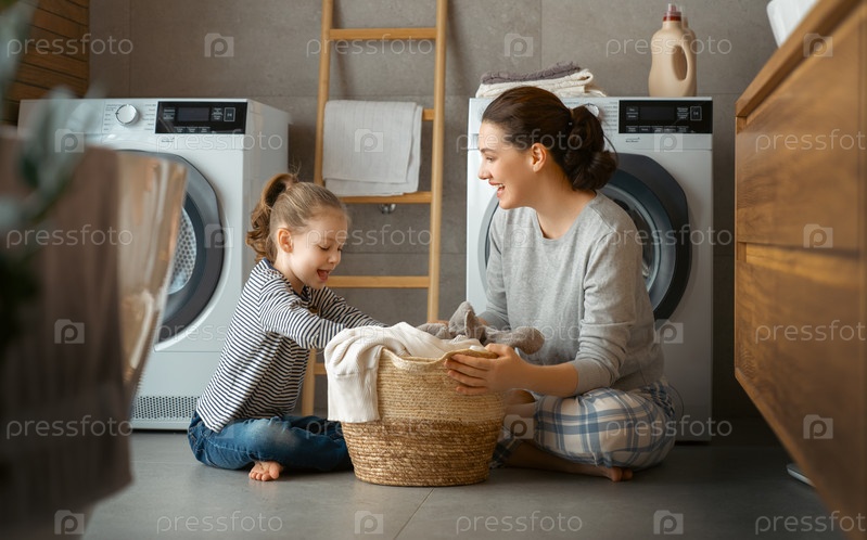 Семья стирает