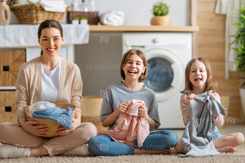 Семья стирает