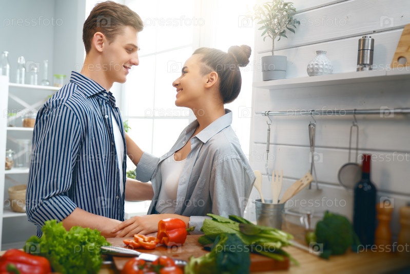 Влюбленная пара готовит настоящую еду