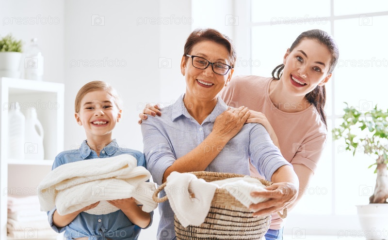 Семья стирает дома
