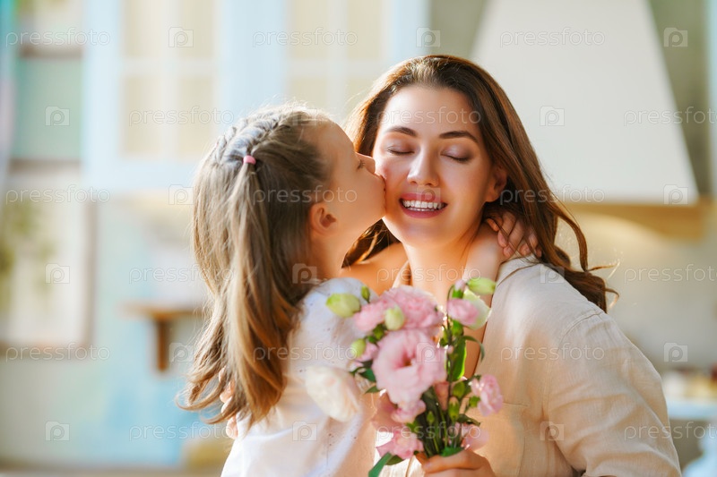 Дочь дарит матери букет цветов